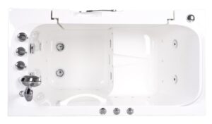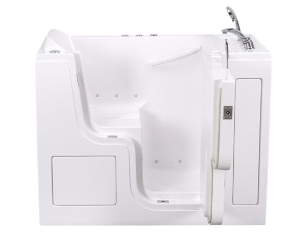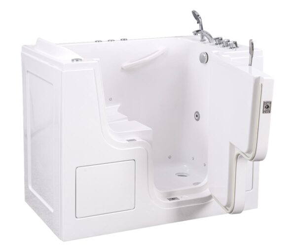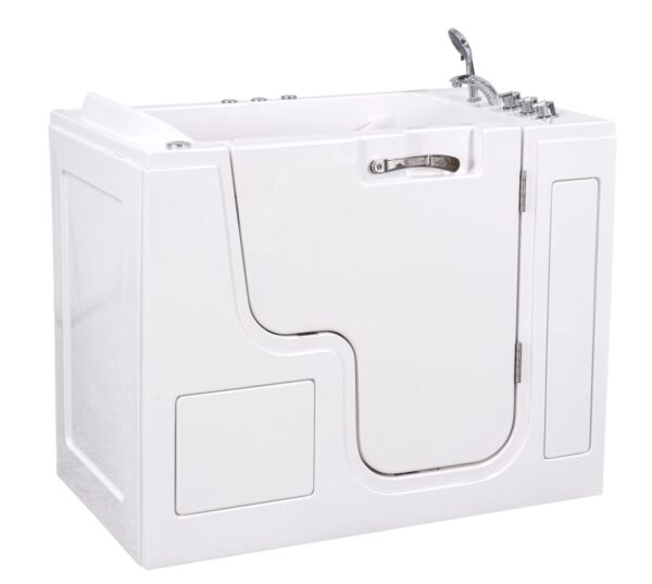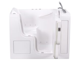 The reduced size of the Denton is greater than the more compact units on the market which adds more room inside where it’s needed. With a higher sitting height and deeper and more spacious than a normal bathtub, this model is great for those looking for extra comfort. With a low entry threshold and front door for wheelchair access, this model has practicality at the forefront and comes complete with filler taps and wastes installed and fitted along with the retracting shower head connection that can be used for showering or to offer an easy way of cleaning through the bath itself