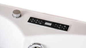 Vidalux’s ergonomic, state-of-the-art jacuzzi jets sit seamlessly around the tub. 8 main Whirlpool jets and 8 Airpsa tub jets are on hand to offer a high-level body massage in a hard-wearing glossy finish bath that makes your bath easier to clean