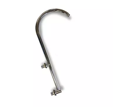 Overhead monsoon shower head arm in chrome with fully adjustable fixing points, with a threaded end to connect a ball joint fixing which allows you to connect an overhead monsoon shower head.
