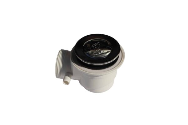 Plug Waste housing with pop up chrome finish plug – Fitted with Steam overflow Connection if required. This type is generally found fitted in steam showers, baths and whirlpools where water needs to be retained in the tub